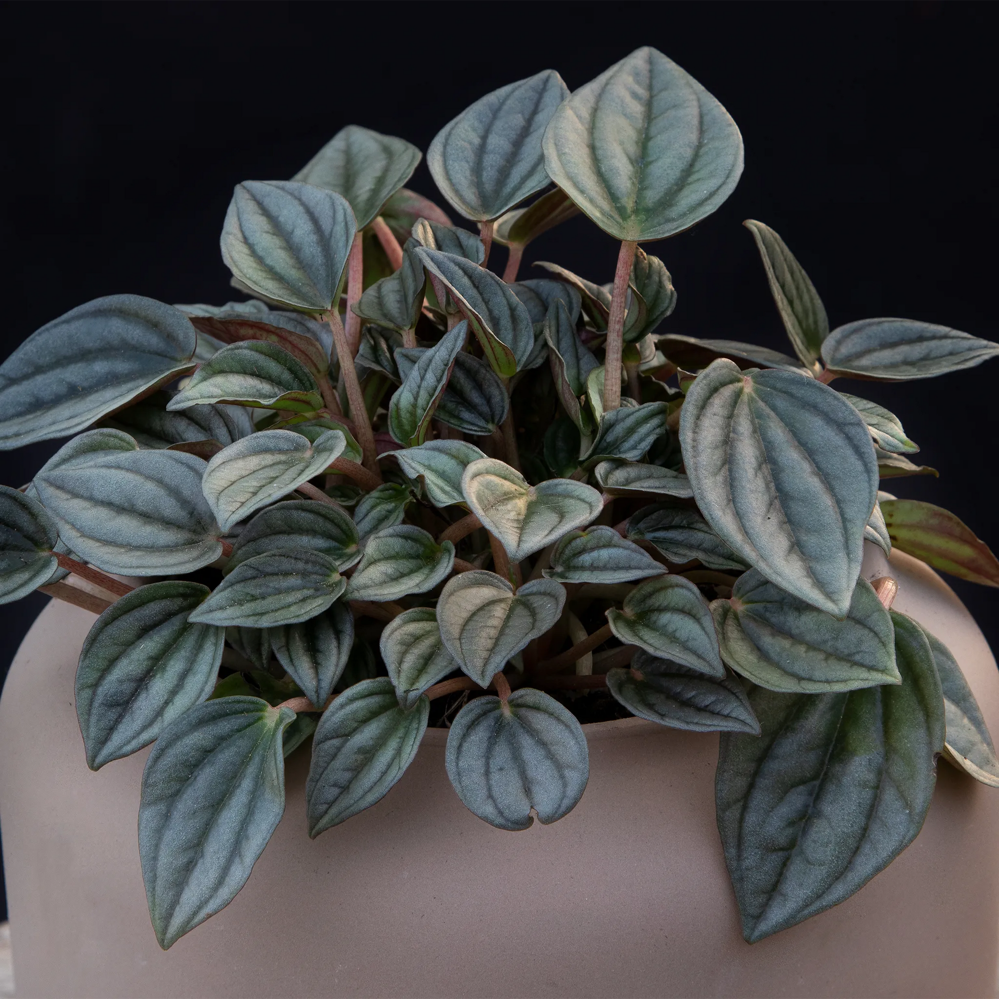 Peperomia ‘Napoli Nights’ is a decorative hybrid Peperomia known for its elegant silvery-green leaves with a smooth, metallic sheen, contrasted by darker green edges and undersides. Growing in a neat rosette, it remains compact and manageable, making it perfect for desks, shelves, or plant clusters. Like other Peperomia, it is low-maintenance, pet-safe, and drought-tolerant due to its semi-succulent leaves. Its subtle metallic tones make it especially attractive in modern and minimalist interiors where it provides understated elegance without demanding much care.